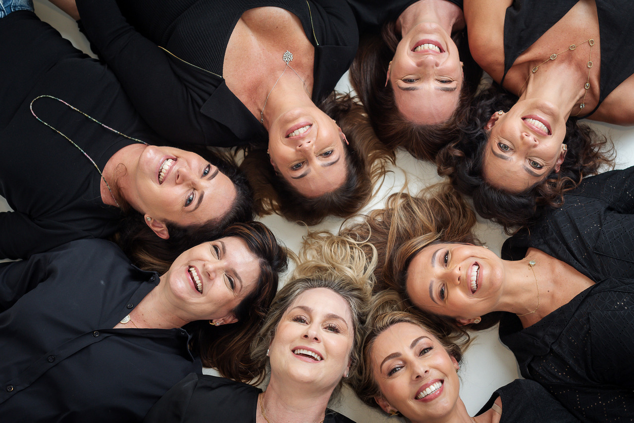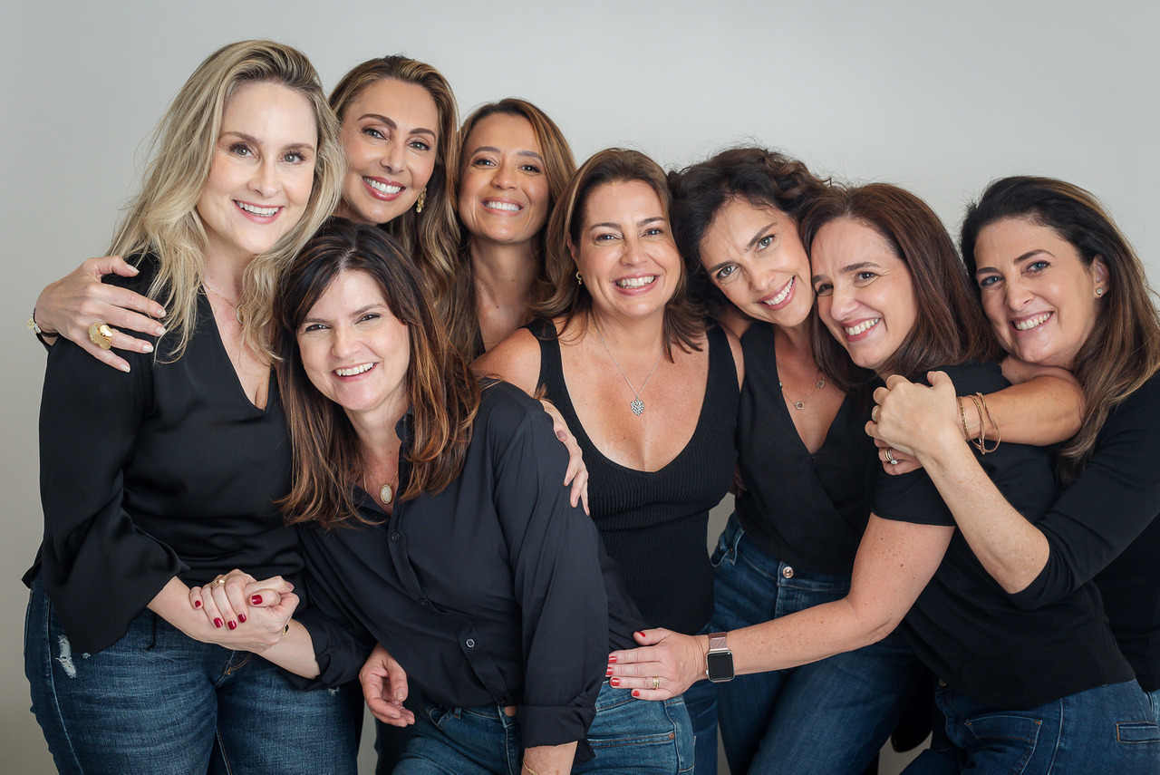 Queria compartilhar com vocês um trabalho incrível que realizei recentemente no estúdio. Amigas há 18 anos, Adriana, Dani, Ana Letícia, Gisela, Marcia, Kenya, Mirelle e Cibele decidiram celebrar sua conexão de uma maneira super divertida: um ensaio fotográfico em estúdio para comemorar esse tempão juntas!